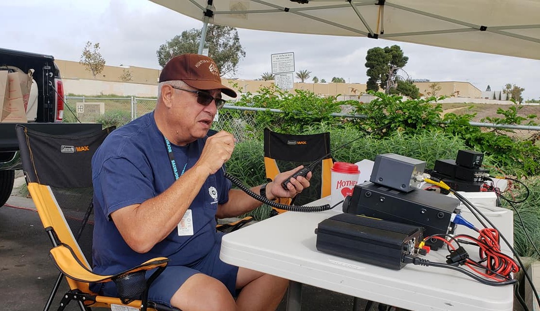 Huntington Beach RACES participates in Orange County's City/County RACES & MOU Auxiliary Communications Service (ACS) Exercises. These exercises are a simulation of local repeater communications failure and the ability to establish backup communications. This is a field-deployment exercise and focuses on alternative means of communications in case of repeater problems. During a recent exercise, HB RACES members Greg Turlis (K6GAT), Jon Welfringer (WB6OZD), Jim Hansen(KG6ZDP) and Roy Hodak (W6OGR) setup in Bartlet Park in Huntington Beach to test operations on 2m & 70cm simplex, HF 60m band and WinLink (Radio/PC packet data).